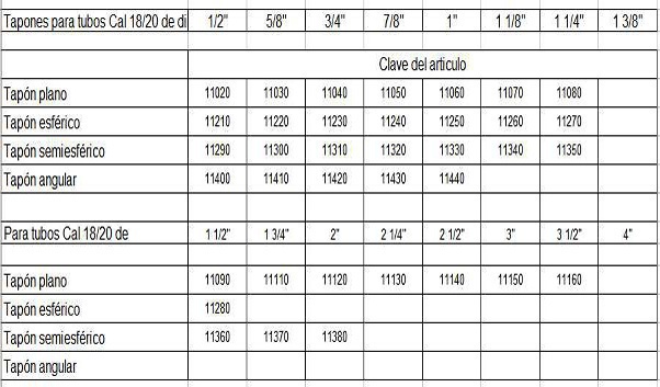 Tapones para tubo redondo calibre 18/20